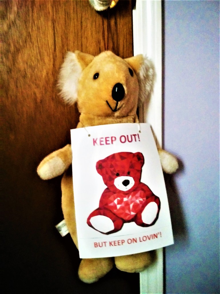 When my younger daughter was growing up, for a period of time, she had hanging from the doorknob to her bedroom a sign which said: KEEP OUT! BUT KEEP ON LOVIN’! My mother, in particular, thought this was quite amusing.
