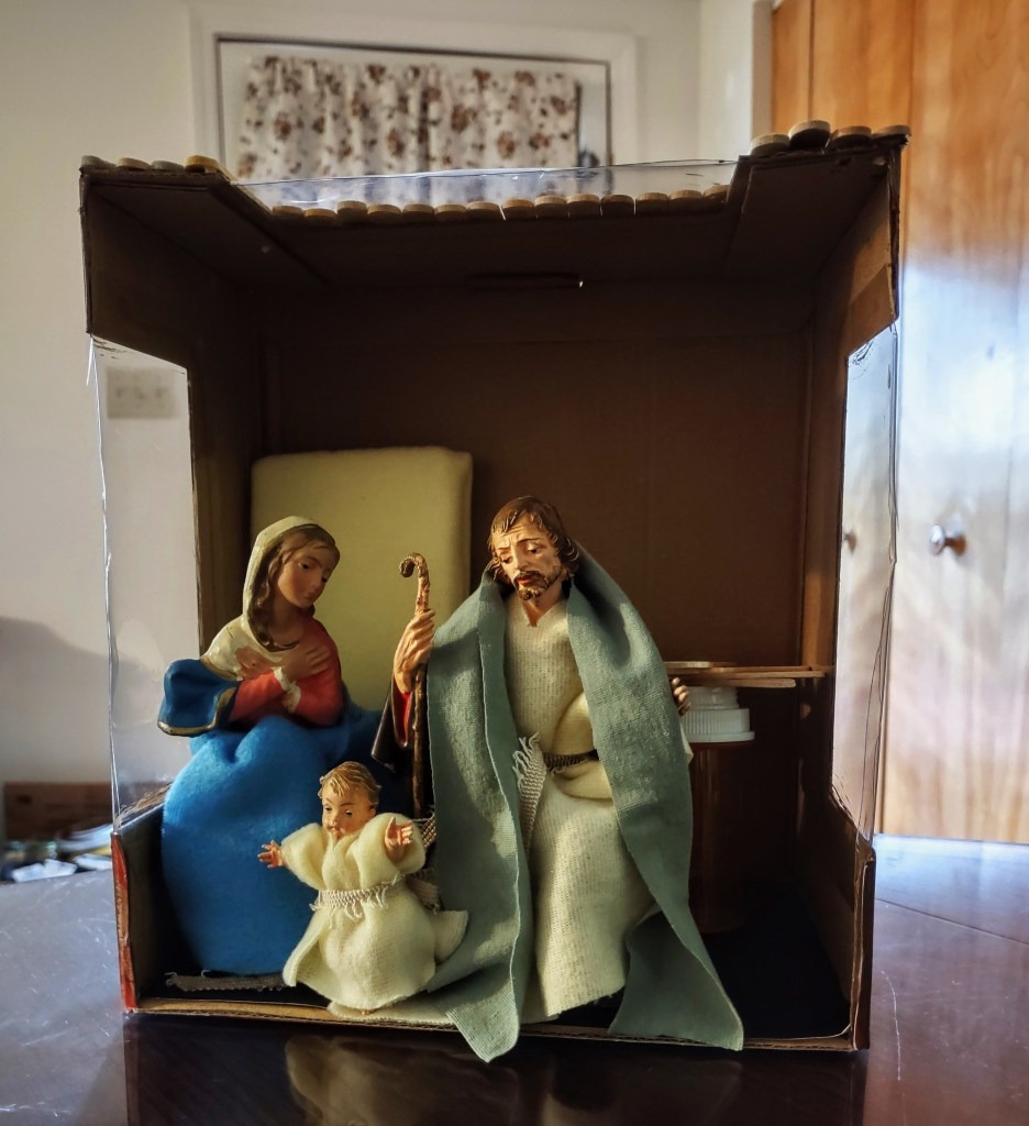 Part of the fun of Thanksgiving at my house is for the family to put up and decorate a tall, full-branched artificial Christmas tree. To go along with the tree, we get out the manger scene with its wooden stable plus the papier mâché figurines of Mary, Joseph, Baby Jesus, Shepherds and sheep, Wise Men and camels, and heavenly Angels. All will be a part of my family’s Christmas Eve reenactment of the Christmas story from the Holy Bible as Scriptures are read and the miniatures are moved along the carpet at the appropriate times.
