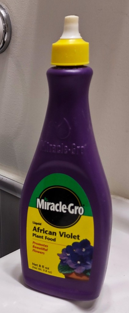 Is there a secret to the amazing growth of my Capricious Cactus? Well, in addition to allowing the cactus’ soil to dry out before I water it, I do feed it a secret potion. This potion is made from decades old liquid violet food. I make it one quart at a time: seven or eight drops of “Miracle Gro” in 32 ounces of water. It is the beverage of choice for all my house plants, but especially for my Capricious Cactus.