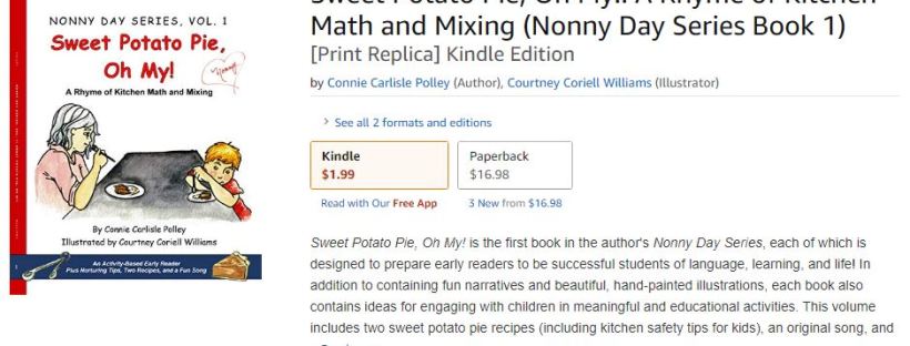 Many of you have told me you wanted to know when and where you might purchase the first book in my children’s NONNY DAY SERIES, VOL. 1, Sweet Potato Pie, Oh My! for pre- and beginning readers. The “when” is now! And the “where” is Amazon.com! Click on the link below to go directly to … Continue reading Available Now–Nonny’s First Children’s Book: Sweet Potato Pie, Oh My!
